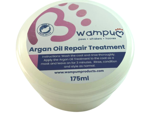 Wash the coat and rinse thoroughly. Apply the Argan Oil Treatment to the coat as a mask and leave on for 3 minutes. Rinse and condition as normal.